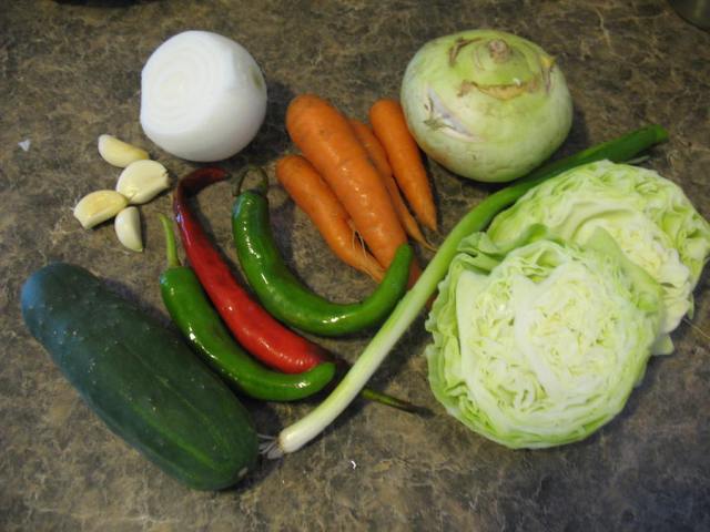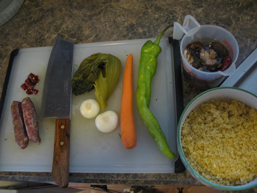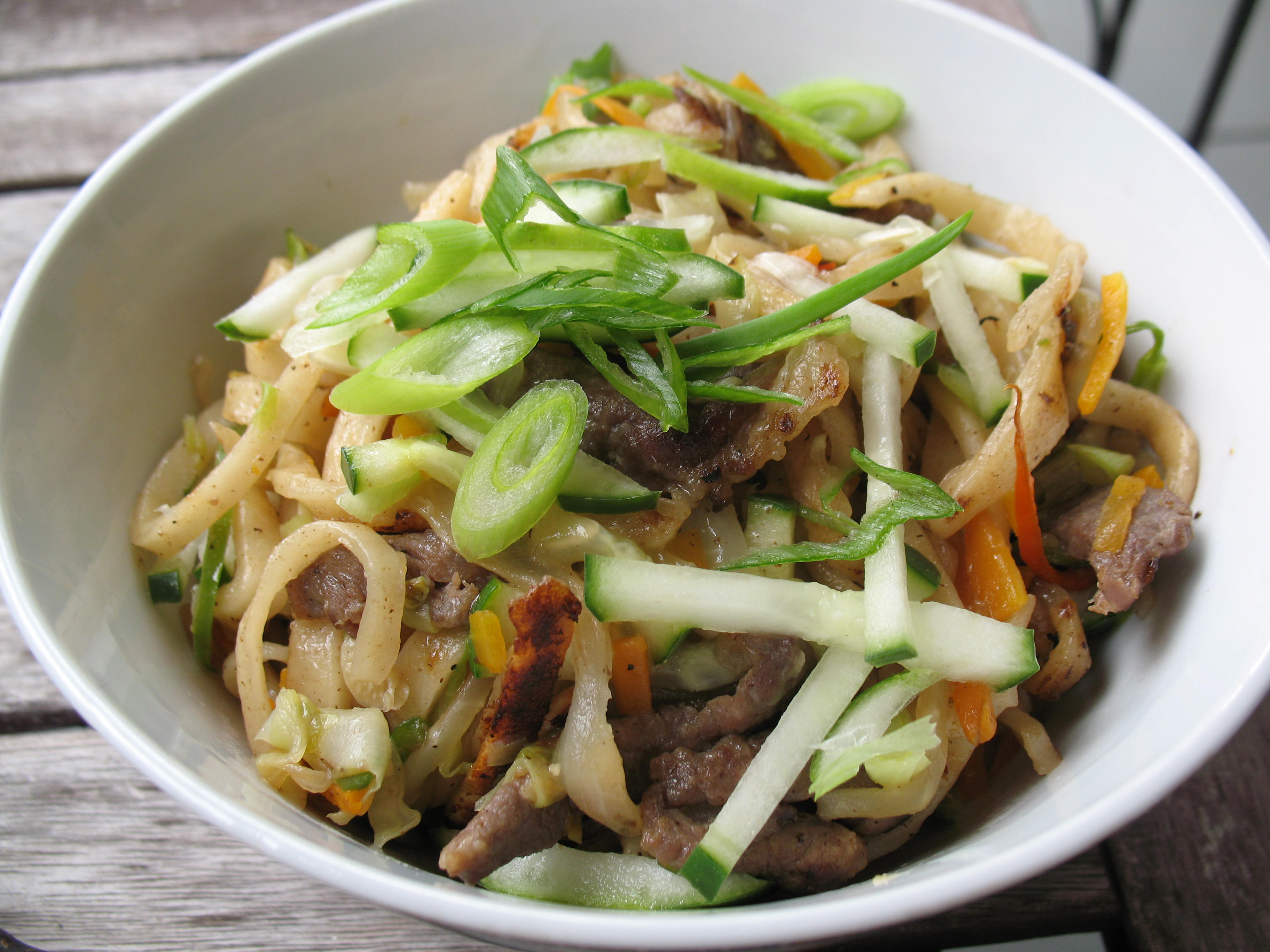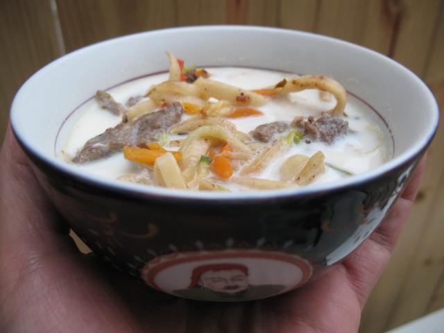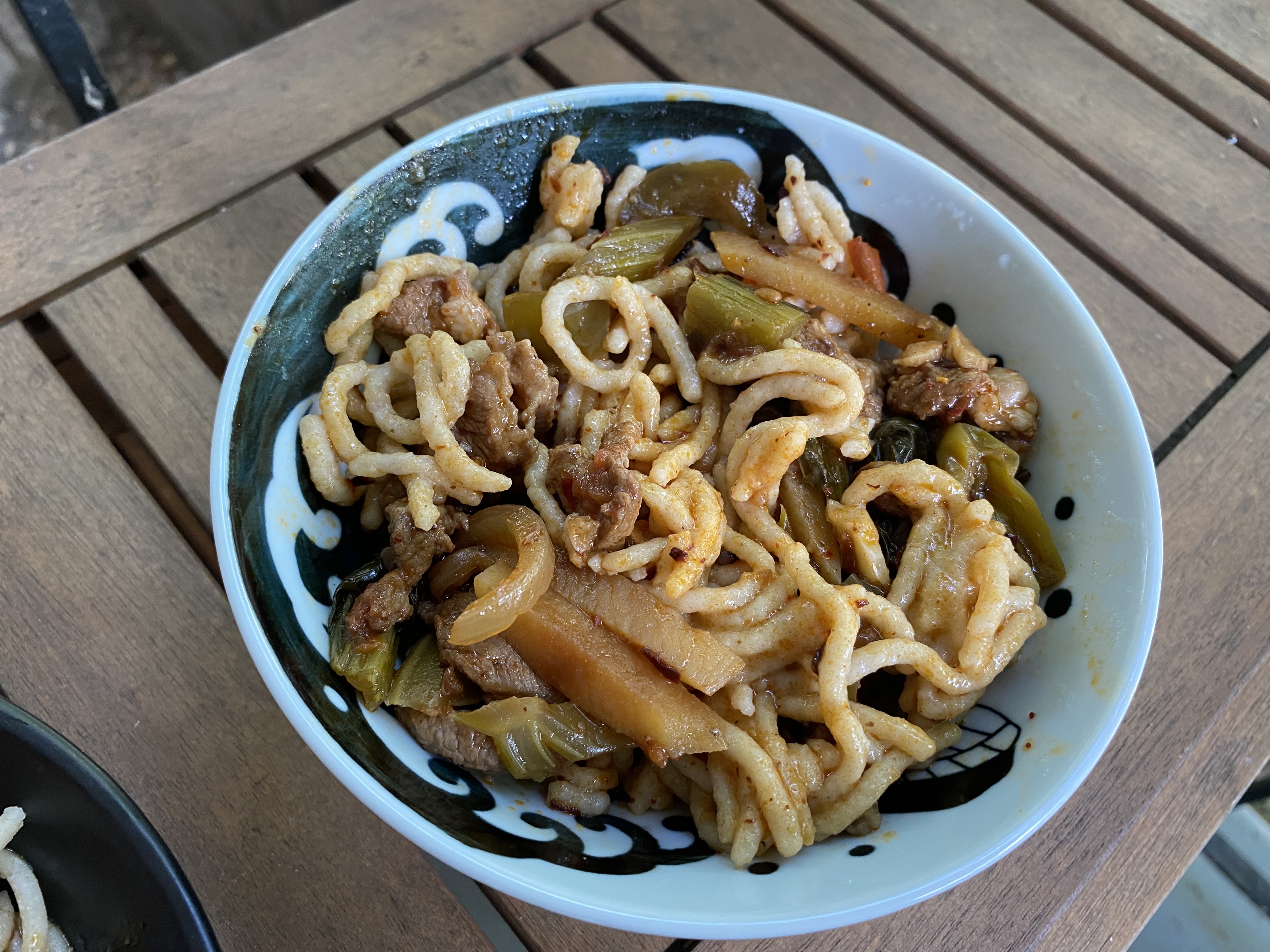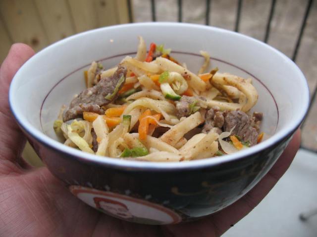 All experiments were topped with lamb and ingredients from my local farmer’s market: celery, potatoes, garlic scapes and tatsoi. Basically this was a home-style läghmän topping (see here for another example of that from a much older post).
