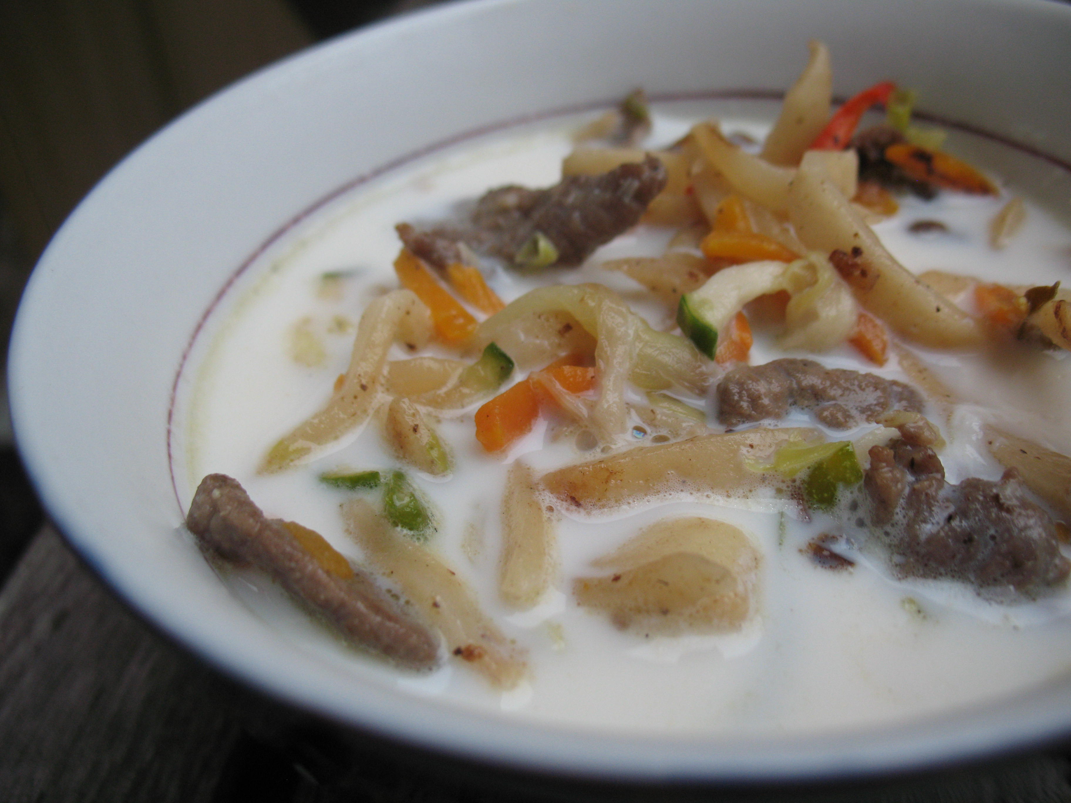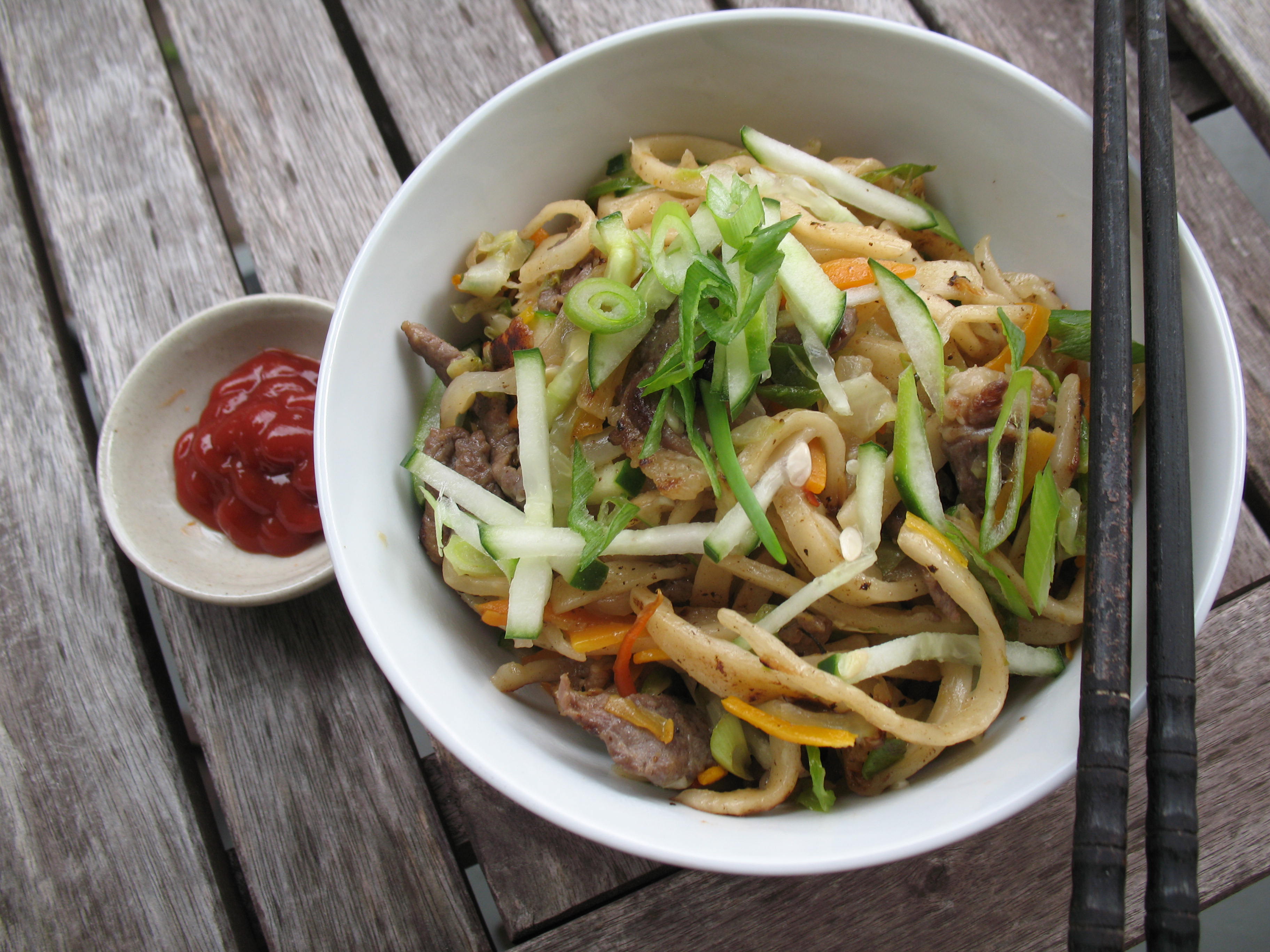 Then I continued with online search queries. It turns out 100% sorghum noodles are kind of a healthy food trend today in southern India. There are several videos online showing how to steam noodles to be used to make a popular Indo-Chinese stir fried noodle dish in India known as “Hakka noodles”. These instructional videos (see here for one, and here for another) were incredibly helpful for me to figure out a good noodle consistency, and to make this work for läghmän.
