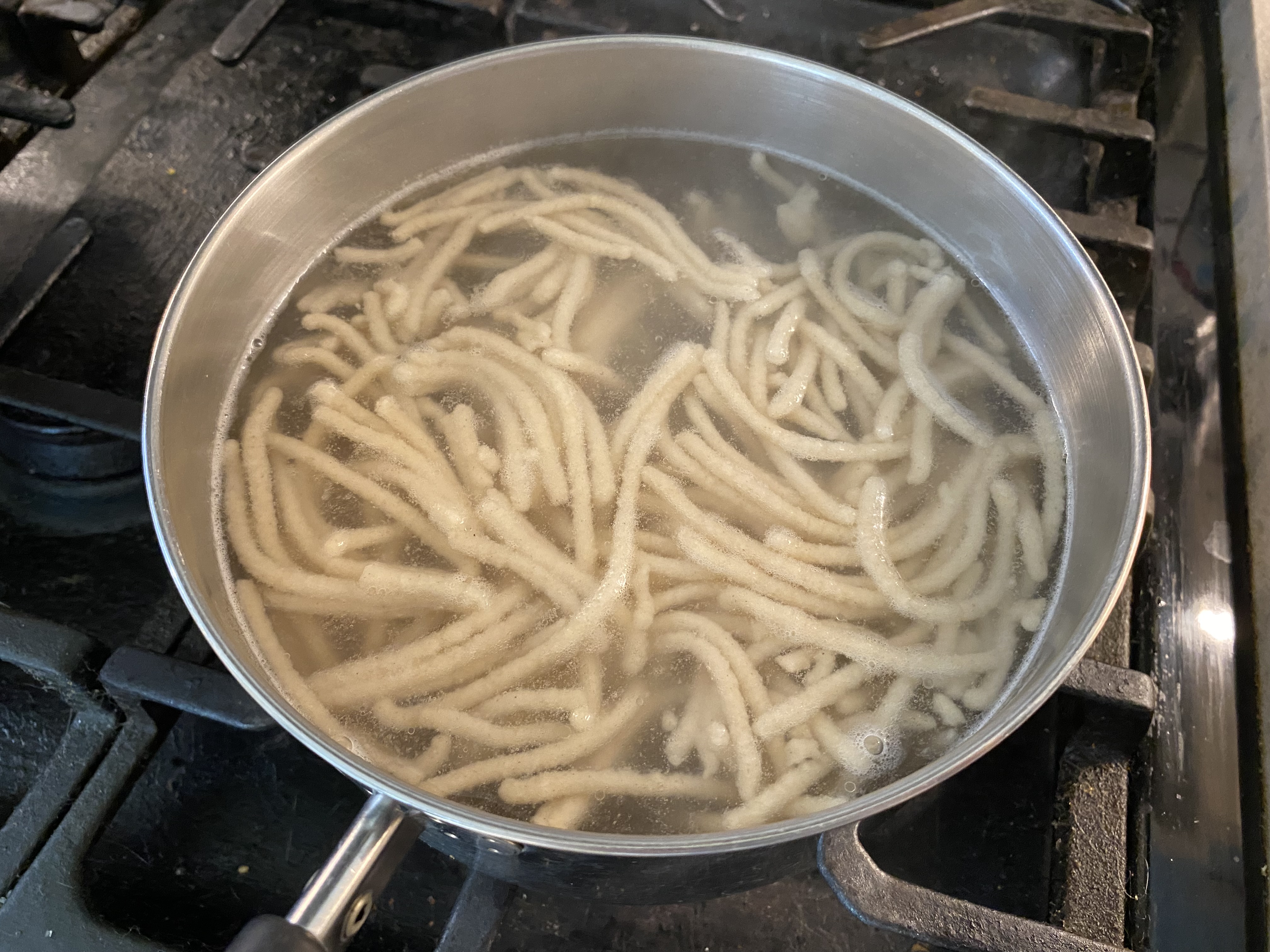I then tried different ratios of mixing with all purpose flour. The following was 50/50 sorghum and all-purpose flour, and I extruded thick noodles directly into boiling water (probably the closest version to the nostalgic video I was emulating). I have to say, the results were not bad: