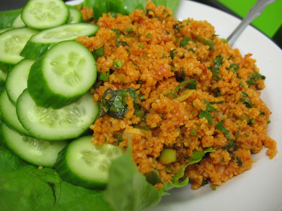 Today I’ll share a recipe for one of my favorite Turkish dishes. It is a fine cracked wheat (a.k.a bulgur or burghul) salad. In Turkish the salad is called kısır. This is a very nice thing to eat on hot days, along with a nice lettuce, cucumber, and yogurt sauce.