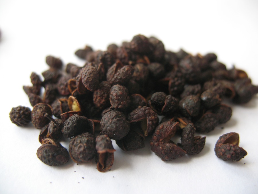 Since I first became acquainted with this spice while living in China, I started to see similar spices used in other countries and regions. At first I thought it was all the same spice, simply used in different ways. Now I know that these are all actually different species of the genus Zanthoxylum. Internationally speaking, the purple-pink Chinese huajiao is by far the best known. This has lead to the frequent labeling of this and all related spices as “Sichuan pepper(corn)”, whether or not these seeds came from Japan, Thailand, Nepal, etc. These spices of course have distinct names in their home regions.