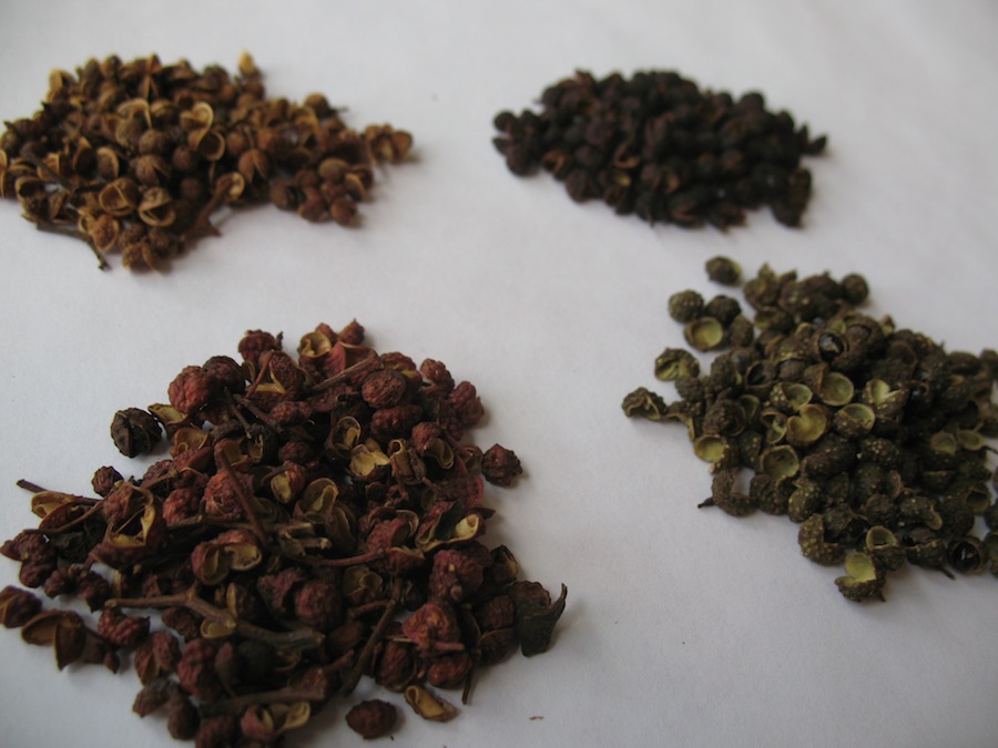 I put this post together today to introduce you to huajiao and to some of its relatives. First, the most commonly available one, and the most widely used in Chinese cooking.