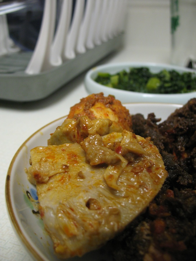 Collard greens in a coconut curry sauce. Very nice. I should note this was only 1/4 of one $6 “NASI PADANG” pack