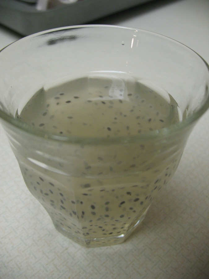 basil seed drink. This is made from the seeds of lemon basil, the little seeds become little slimy tadpoles. Quite nice.