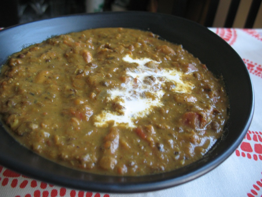 Dal can refer to the types of pulses from all over South Asia, and it can also refer to a soup made from those beans and lentils. Soups with lentils or beans are economical and protein-rich, are popular all over the world. A relatively thick style of dal from the north of India and Pakistan, is perfect over rice for a satisfying lunch. This is dal makhani. This is an easy dish to adapt for vegan and vegetarian tastes, but it is often made with heavy cream, and I like to make mine with cream, ghee, and if I have it, chicken stock. It is delicious without these too, and I’ve made this enough times with various substitutes, that I find its adaptations are infinite.