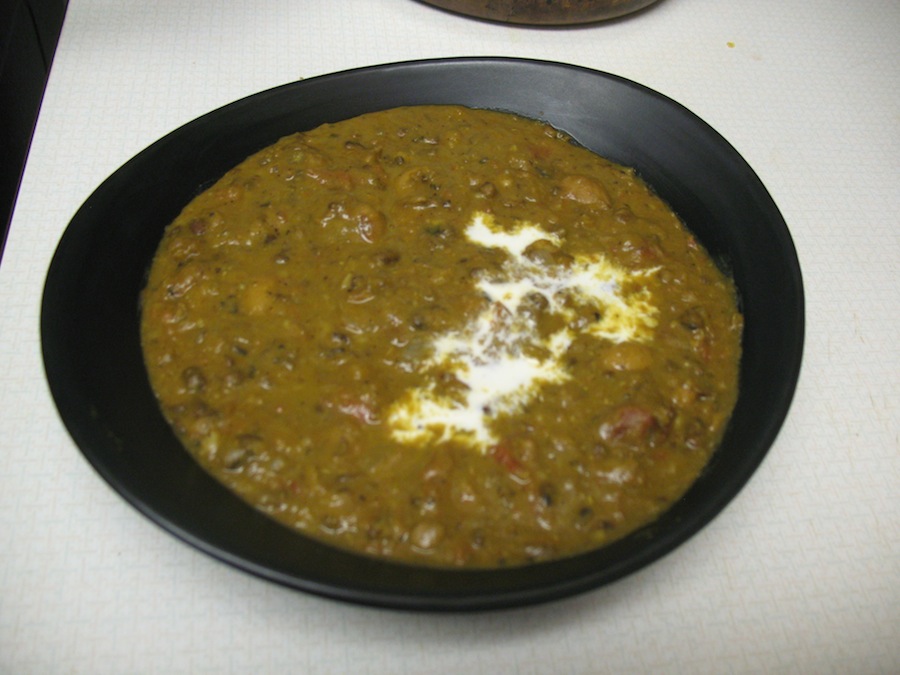 This is a creamy, protein-packed stew of beans and urad dal. It is great with bread (naan traditionally) or rice. Here is a recipe for my pressure cooker method: