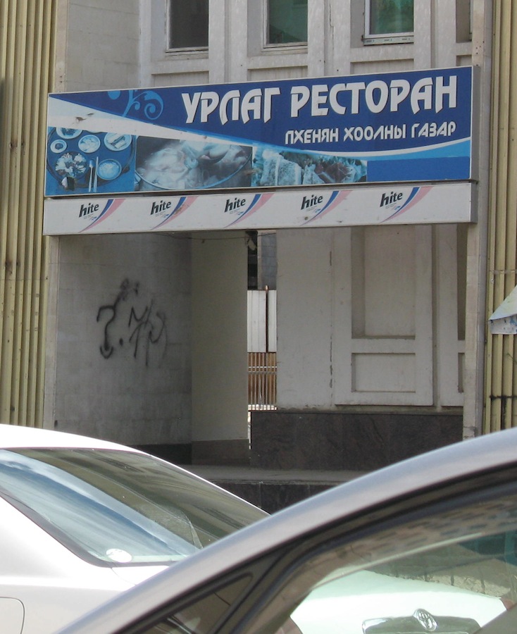 Solongos restoran. This one actually has a title “happiness” in Hangul too, which is rare in UB. Generally signage is in Mongolian and/or English only.