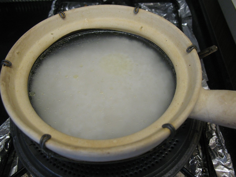 Tips toward a perfect rice: one way to help ensure the rice cooks through evenly is to pre-soak the rice for at least 1/2 hour. I usually use short grain East Asian rice (i.e. Japanese rice used for sushi). Many cooks and recipes say you shouldn’t stir the rice while it is cooking. I usually do a bit at the beginning of the cooking process, but once it starts to boil and set, don’t stir. It will help that crisp layer on the bottom to form. Another trick is to use a heat diffuser between your pot and the flame or heating element. If you do, you can drop the heat way down at the end if the rice is already crisping and not cooking through. With this method you can sprinkle a little water on top and let it sit on very low heat for another 10 minutes or so to cook through.
