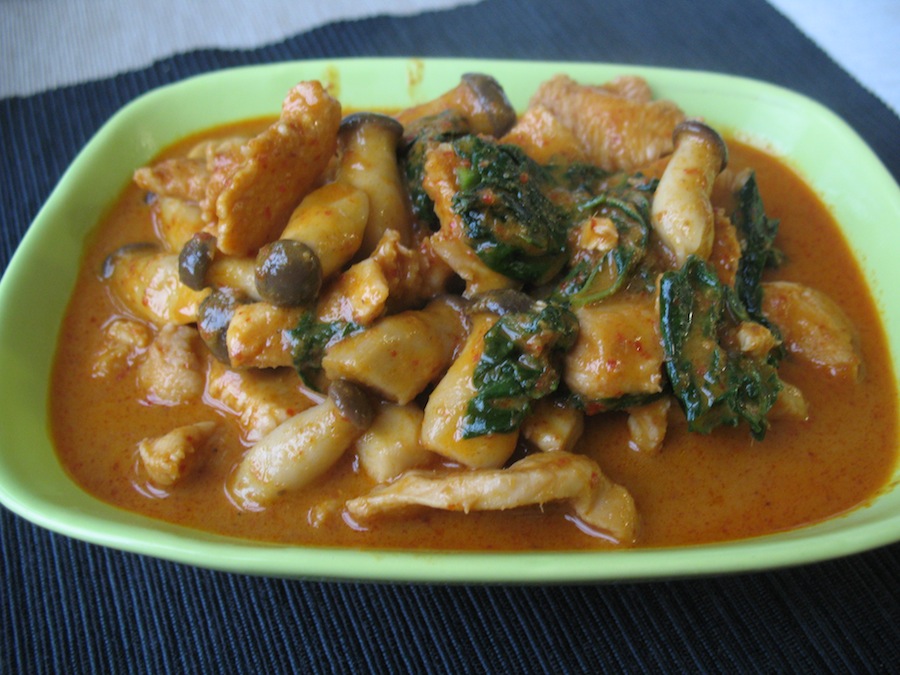 Recipe: Thai chicken and mushroom curry with cha plu leaves – แกงคั่วไก่ใส่เห็ดกับใบชะพลู