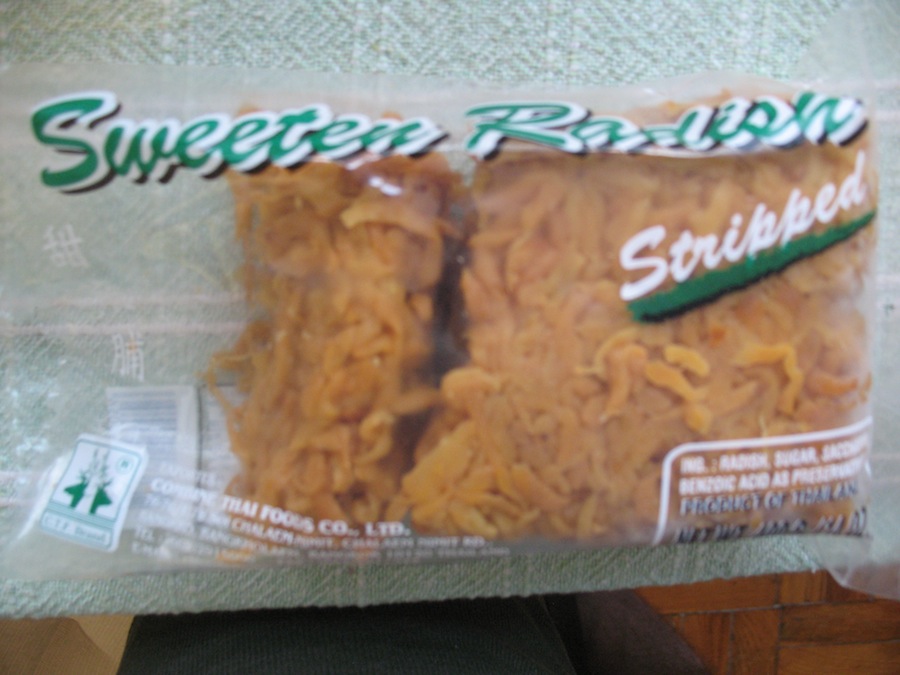 This is a variety of preserved daikon, based on traditions of Southeast China (Guangdong, Hong Kong, Fujian, and Taiwan). There it is known as 菜脯 (sometimes written 菜甫, with a pronunciation that varies slightly in the region’s dialects, but approximately as the Thais call it: “chaipo”). This sweet radish is used in Southeast Chinese cooking often for noodle dishes, and also to make a savory omelette (which is also popular in Thailand).