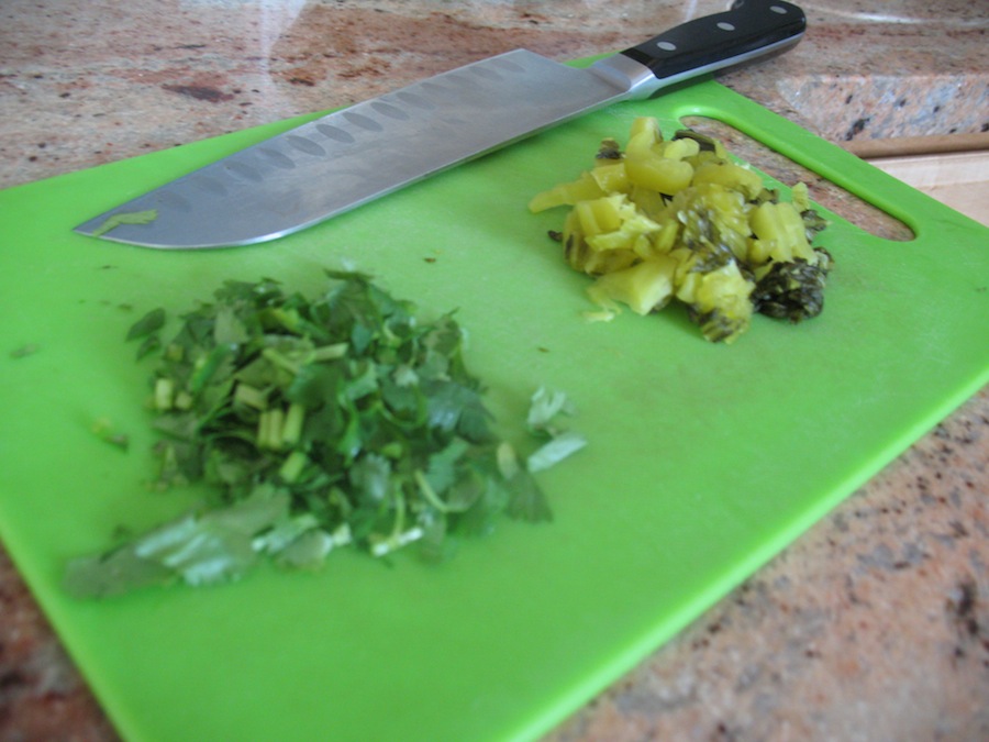 roughly chopped cilantro and mustard