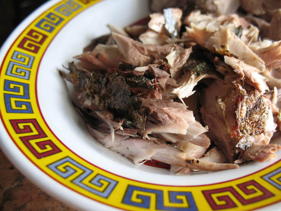 Kassod tree leaves and a leafy Thai curry with grilled fish (gaeng khiilek)
