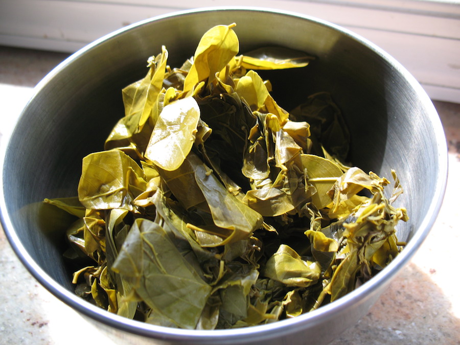 drained and squeezed leaves