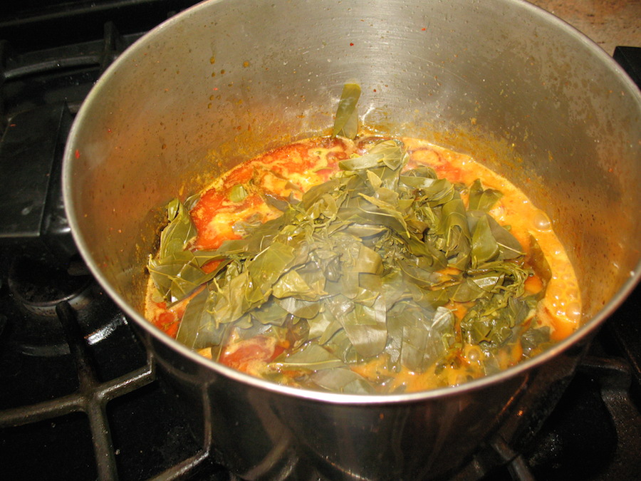 Kassod tree leaves and a leafy Thai curry with grilled fish (gaeng khiilek)