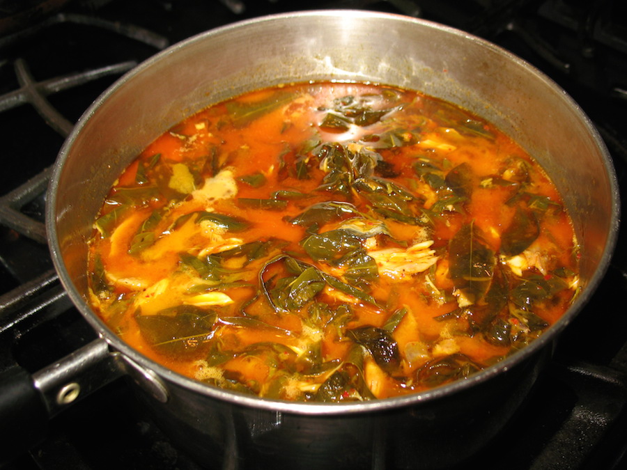 Kassod tree leaves and a leafy Thai curry with grilled fish (gaeng khiilek)