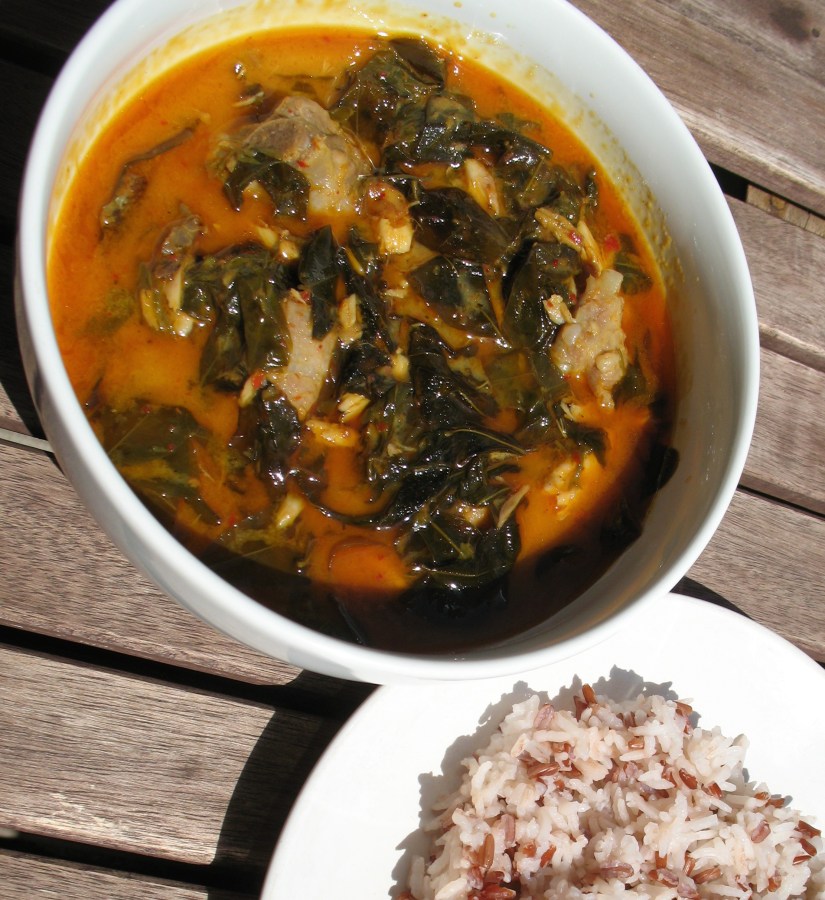 Kassod tree leaves and a leafy Thai curry with grilled fish (gaeng khiilek)