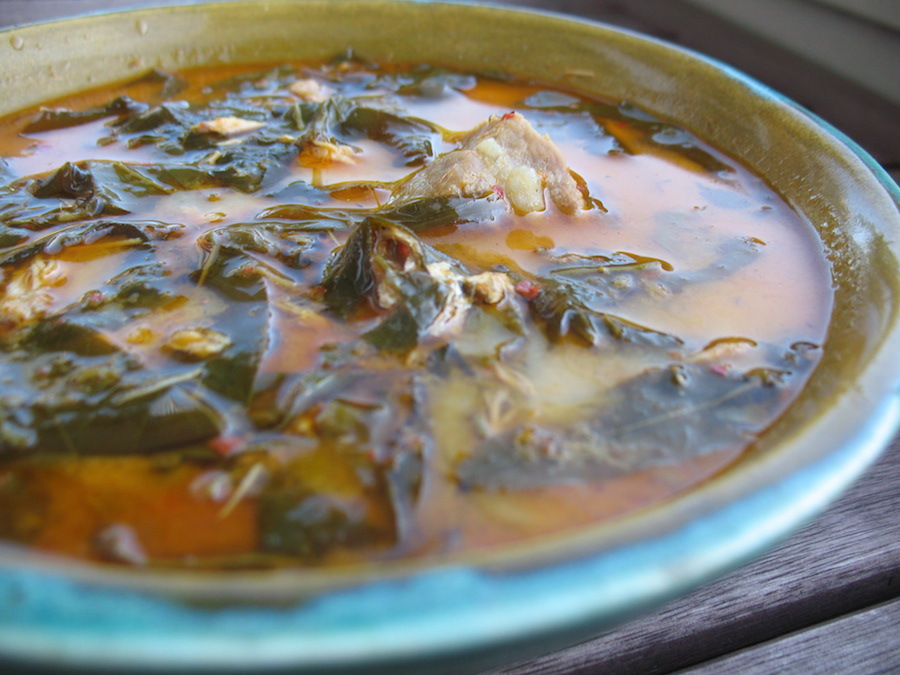 Kassod tree leaves and a leafy Thai curry with grilled fish (gaeng khiilek)