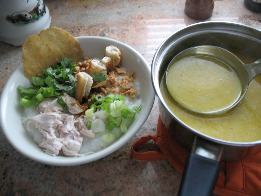 Selamat pagi, Yogyakarta: a surprisingly rich and savory chicken rice porridge for breakfast