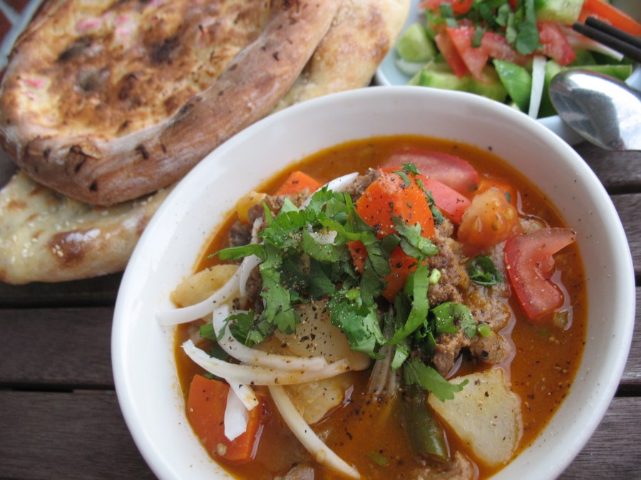 A childhood comfort food memory via Kashgar flatbread and a savory mutton stew