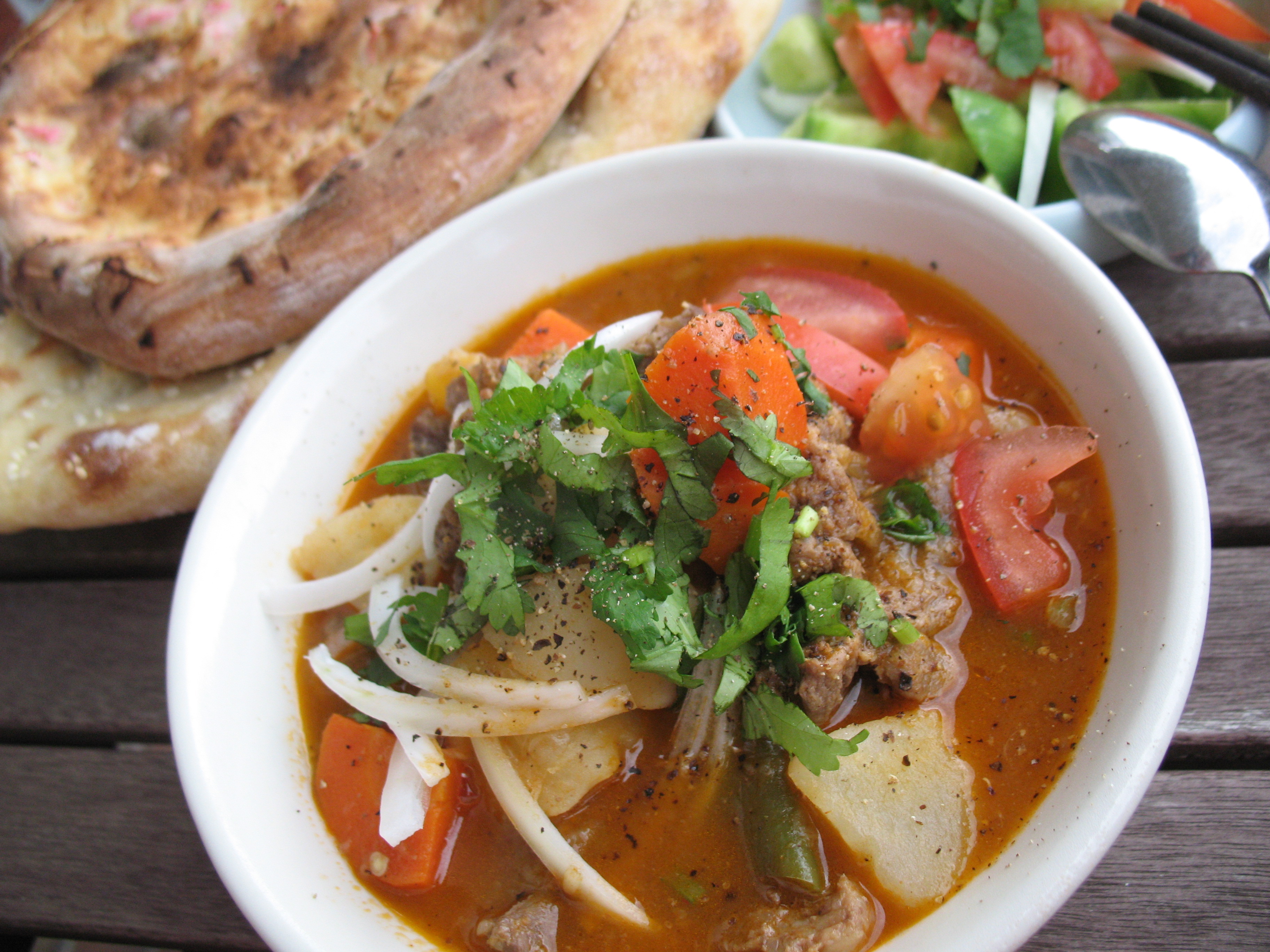 A childhood comfort food memory via Kashgar flatbread and a savory mutton stew