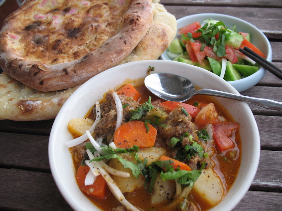 A childhood comfort food memory via Kashgar flatbread and a savory mutton stew
