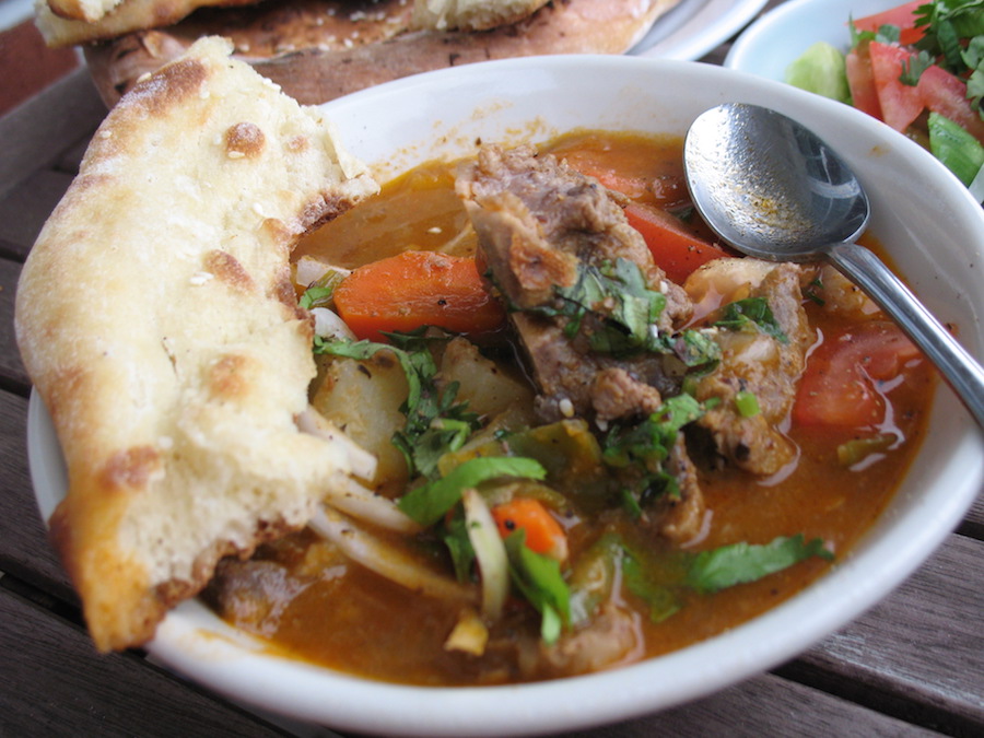 A childhood comfort food memory via Kashgar flatbread and a savory mutton stew
