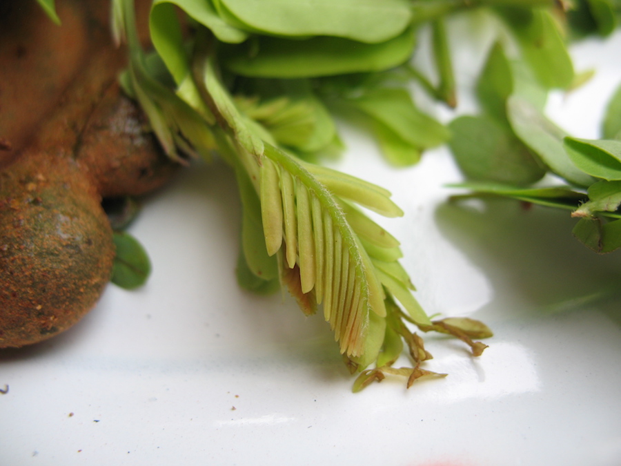 Look for the tips of each little branch for a feather-like pattern
