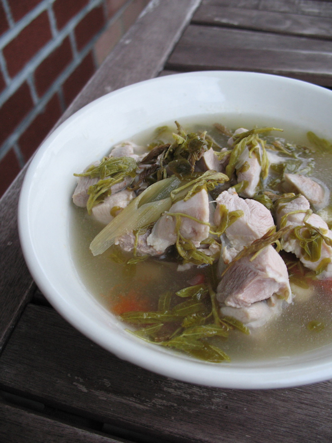 Young tamarind leaves and an Isaan-inspired sour chicken soup