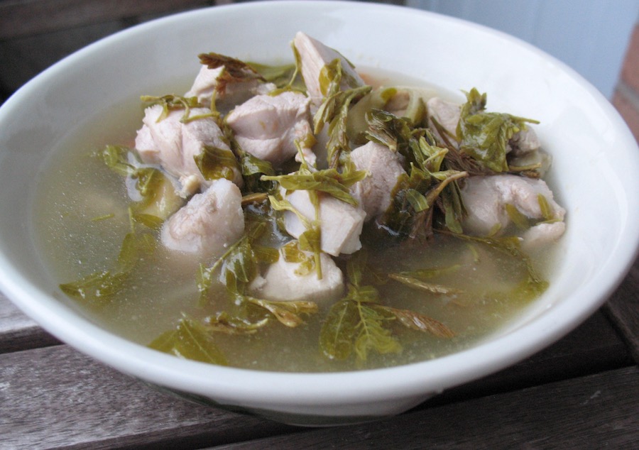 Young tamarind leaves and an Isaan-inspired sour chicken soup