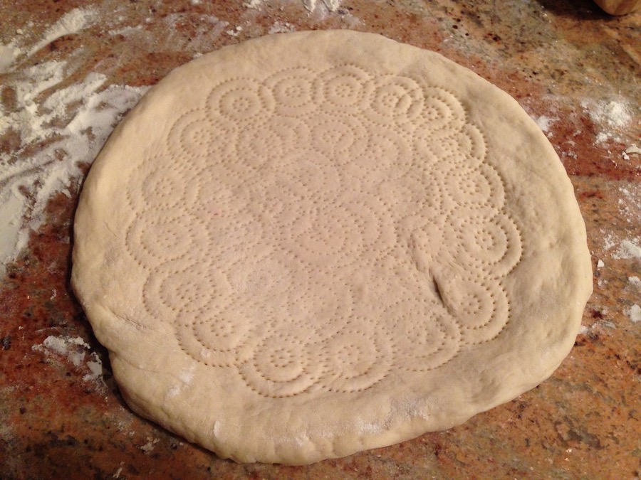 Savory Uyghur flatbread at the base of a stew