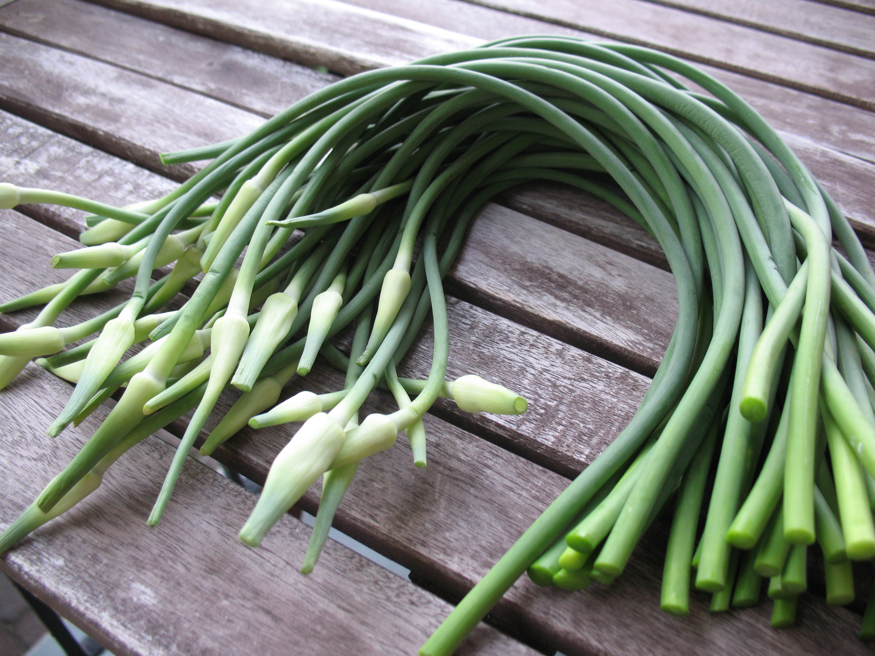 Garlic scapes, fried as a vegetable