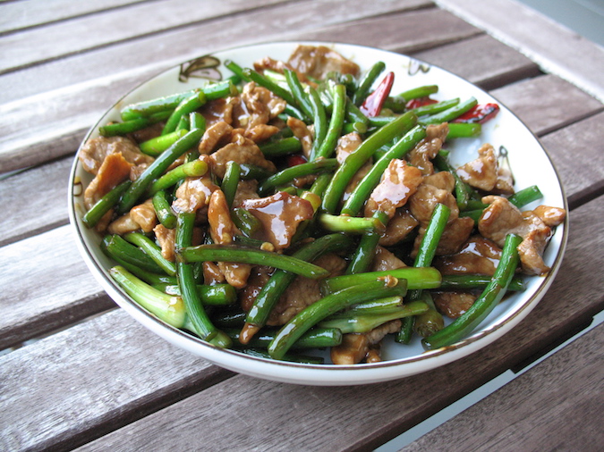 Garlic scapes, fried as a vegetable