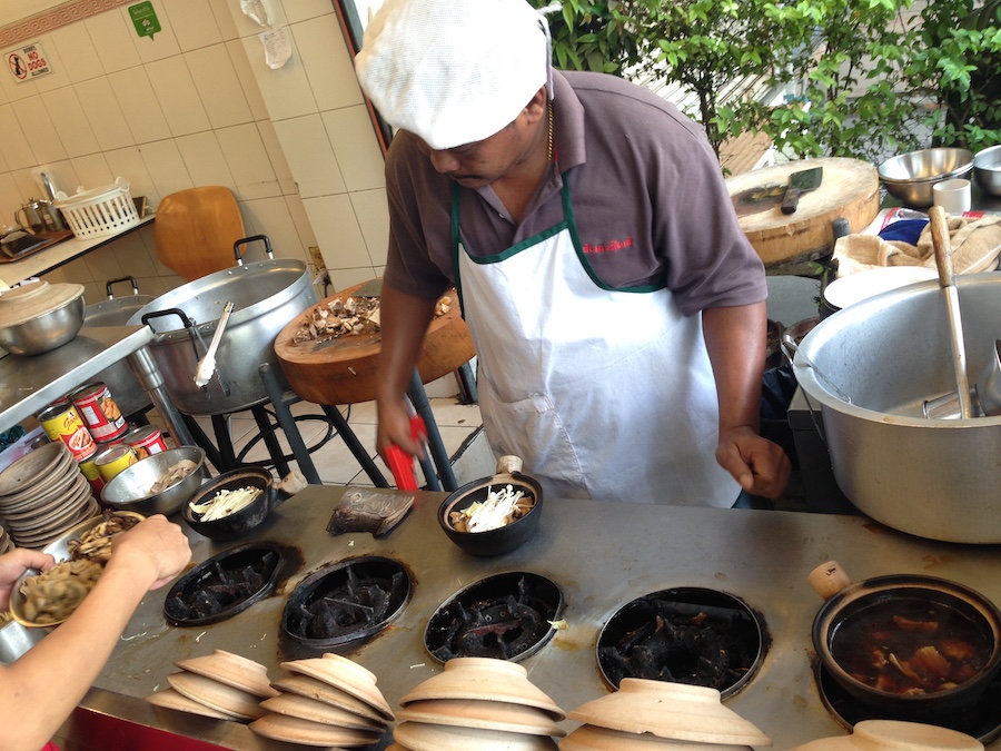 Chef preparing each clay pot to specialized orders of meat and vegetable