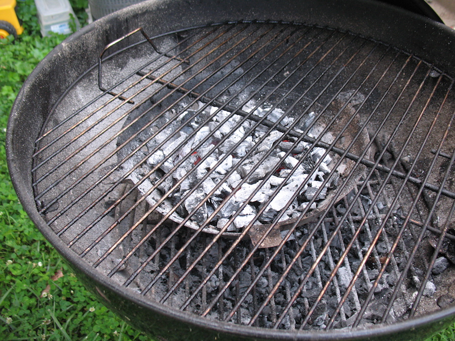 The top grate fits right over the coals