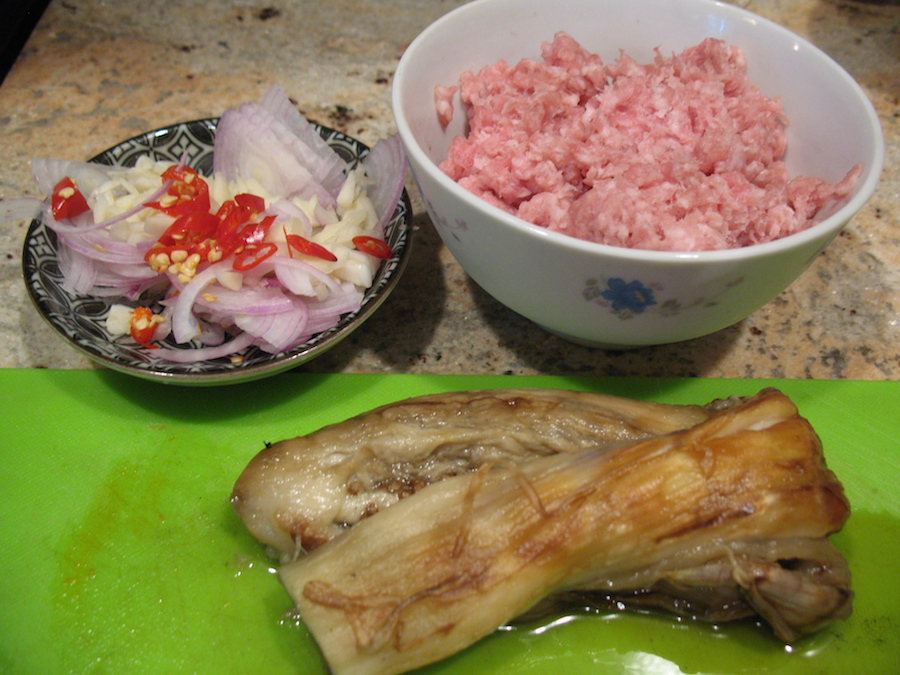 The eggplant skin comes off easy